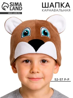 Карнавальная шапка "Медведь", велюр, хлопок, р. 52-57, МИКС