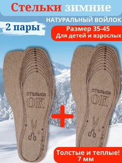 Стельки зимние войлочные для обуви 7мм 2 пары