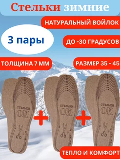 Стельки для обуви зимние войлочные 3 пары 7мм