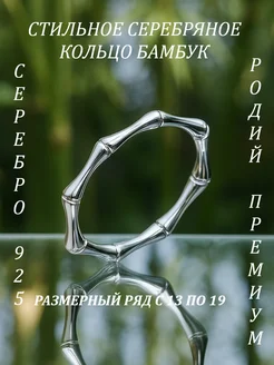 Ювелирное кольцо тонкое серебро 925 Бамбук