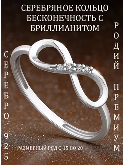 Ювелирное кольцо серебро 925 бесконечность с камнем