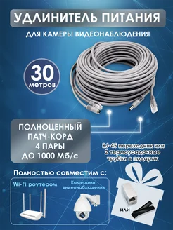 Удлинитель питания для IP камер с патч-кордом 8 жил