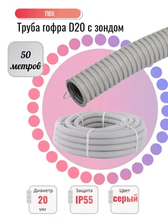 Труба гофра ПВХ d20 серая 50 метров