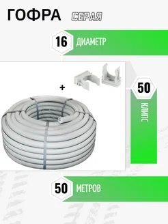 Труба гофра с зондом ПВХ 16 мм 50 метров + 50 клипс серая