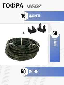 Труба гофра с зондом ПНД 16 мм 50 метров + 50 клипс черная