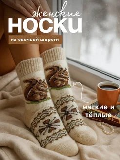 Носки женские теплые вязаные шерстяные с принтом