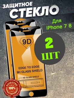 Защитное стекло на телефон iPhone 7, 8 черная рамка