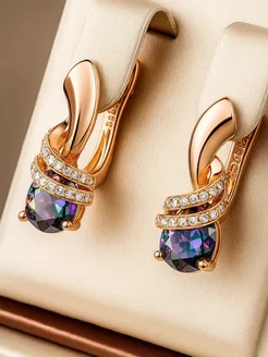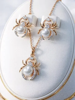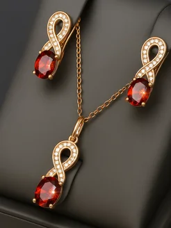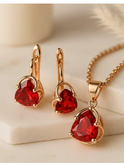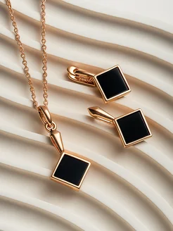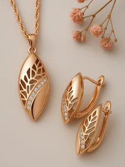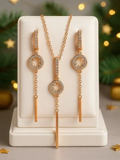 Набор бижутерии серьги и цепочка с подвеской позолоченные