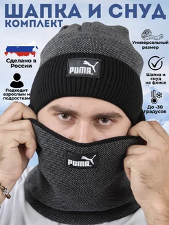 Шапка бини со снудом комплект на флисе зимняя осенняя