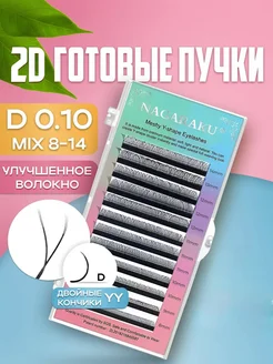 Ресницы для наращивания пучки Y 2D 0.10 C микс 8-14 мм