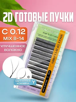 Готовые пучки Y 2D 0.12 микс 8-14 мм ресницы для наращивания