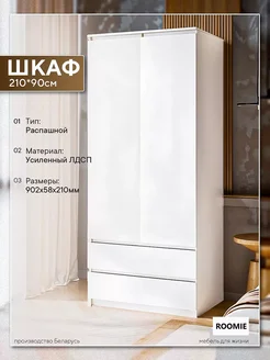 Белый шкаф 90 см ширина для одежды с ящиками и полками