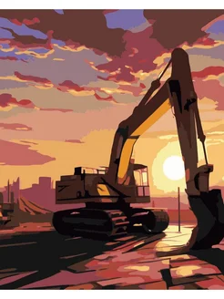 Картина по номерам Экскаватор на закате на холсте с деревянн