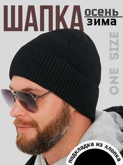 Шапка мужская зимняя вязаная бини с отворотом демисезонная