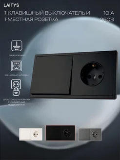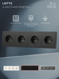 Розетка тройная, внутренняя, накладная встраиваемая, чёрная