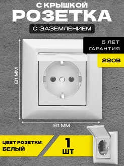Розетка с заземлением с крышкой Roma White Белый пластик
