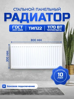 Панельный радиатор тип 22 - 300х800 мм с боковым подключен