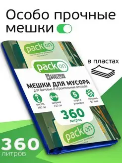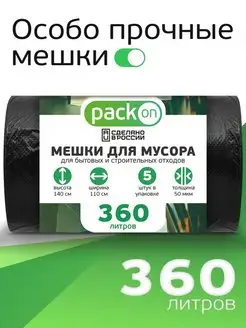 Пакеты для мусора 360 литров 50 мкм