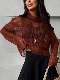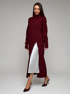 Вязаное платье свитер с горлом и разрезом оверсайз