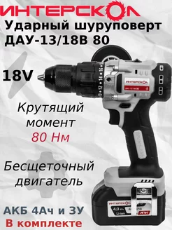 Шуруповерт аккумуляторный ИНТEРСКОЛ Дау-13 18В 80 Нм