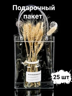 Подарочный пакет прозрачный с ручкой 25 шт 20*7*15 см
