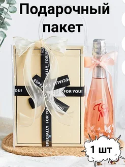 Подарочный пакет прозрачный с ручкой размер 35*10*30 см