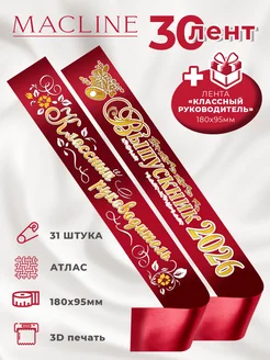 Ленты выпускника 2026 3D в комплекте 30 шт