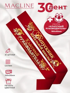 Лента атласная Выпускник начальной школы 2026 набор 30 шт ПЦ