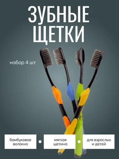 Комплект бамбуковых зубных щеток 4 шт, разноцветные