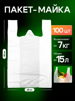 Пакет майка 100 шт большие прочные с ручками для пвз