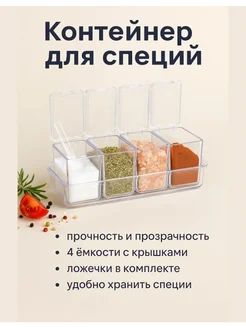 Контейнер для специи и приправ с крышками и ложками 4 секции