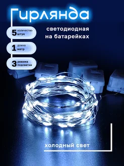 Гирлянда светодиодная на батарейках 1м - 5 шт