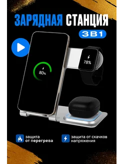 Беспроводная зарядка универсальная 3 в 1 док станция