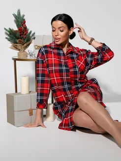 Платье рубашка халат домашнее трикотажное в клетку