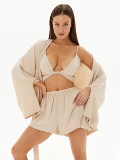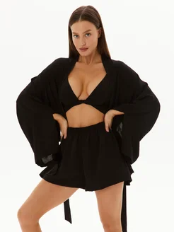 Костюм тройка летний с кимоно и шортами