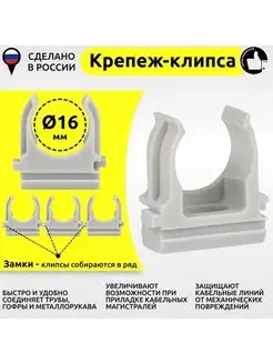 Крепеж гофры клипса 16 мм упаковка 100шт серая