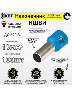 Наконечник 100 шт 16 мм2 НШВИ втулочный изолированный
