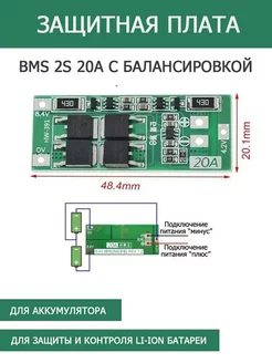Плата BMS 2S 20A с балансировкой