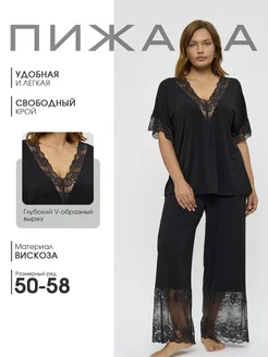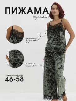 Пижама с брюками и топом с кружевной отделкой из бархата