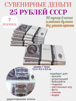 Деньги сувенирные бумажные 25 рублей СССР, 7 пачек