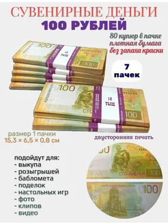 Деньги сувенирные бумажные "100 рублей" новые, 7 пачек
