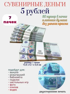 Деньги сувенирные бумажные 5 рублей, 7 пачек