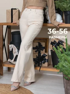 Джинсы прямые бежевые стрейч с высокой посадкой