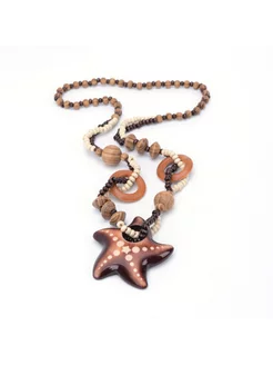 Бусы деревянные длинные морская звезда