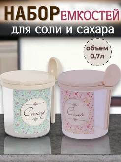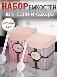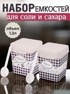 Набор для сахара соли и специй с крышкой и ложкой 1,2л 2шт