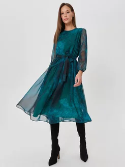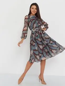 Платье миди шифоновое с длинным рукавом