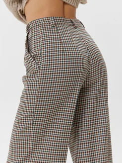Брюки прямые в клетку коричневые