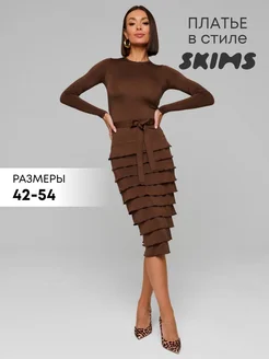 Платье трикотажное праздничное ярусное с воланами вечернее