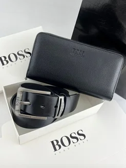 кошелек кожаный черный и ремень набор