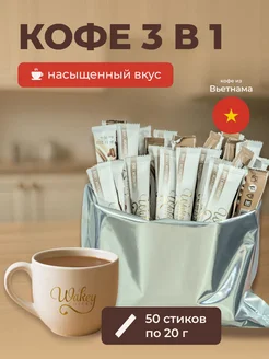 Растворимый кофе 3 в 1 Wakey (Вьетнам) в стиках 50шт по 20гр